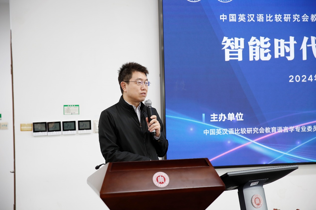 教育语言学专业委员会会长、上海交通大学外国语学院院长常辉在致辞中回顾了教育语言学研究在中国的发展历程,并介绍了教育语言学会的基本情况。他认为,教育语言学研究者要关注“理论-实践-社会”三者之间的关系,在实践过程中更加关注社会现实,让教育语言学的最新研究成果为社会进步和人类福祉服务。他强调,教育语言学“一方面需要研究教育中的语言问题,如基础教育、外语教育、中文教育以及特殊教育;另一方面要研究教育语言教育中的一些问题,如翻译教学、文学教学、关键语种教学、少数民族语言教育等。”他希望通过本次大会,与会师生能够交流思想、碰撞灵感、拓宽思维,不断增强信息化素养,同时能够向社会辐射教育语言学的价值和意义,不断增强教育语言学的社会影响力。