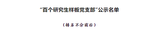 4月17日,教育部公布了第三批全国高校“百个研究生样板党支部”和“百名研究生党员标兵”创建名单。经组织推荐、通讯评审、集中会审、结果公示,遴选产生 100 个研究生样板党支部和 100 名研究生党员标兵。