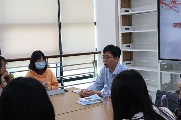 在交流和互动环节,郭侃亮老师针对在场同学的个人兴趣和特点,分别给出了职业发展的建议。对于有志从事中学多语种教师的同学,他提出,要正确认识教师这份职业的责任和使命,多去中学参与实习,在实践中提升教学能力和教师素养。