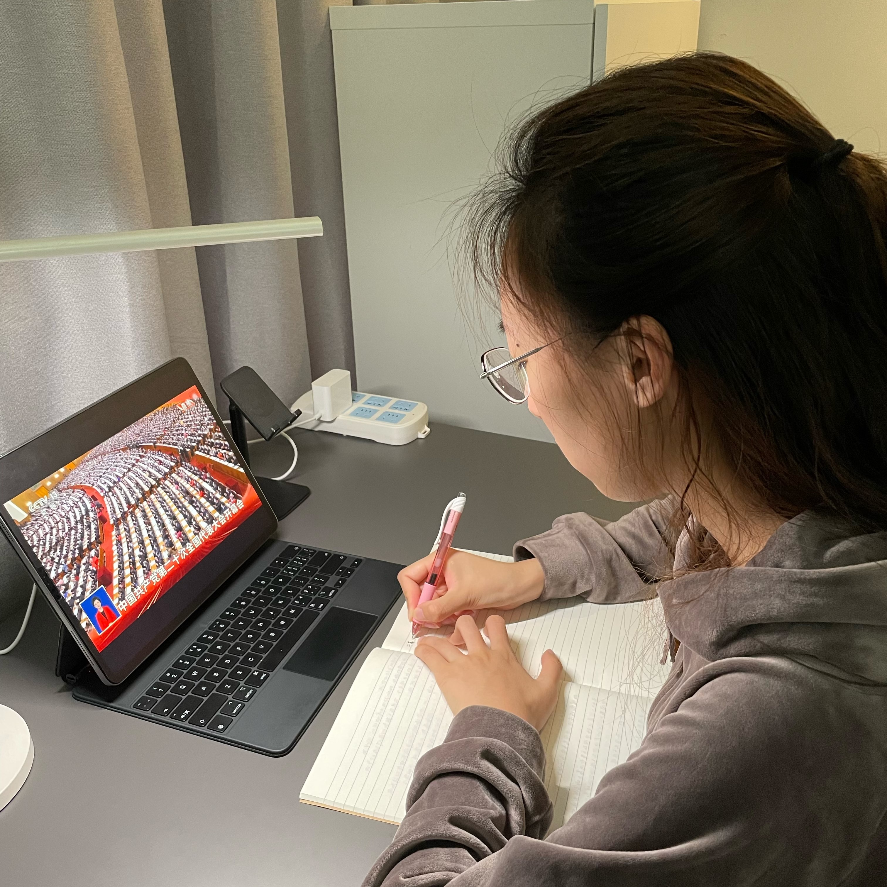 h动漫 组织全院师生通过线上线下结合的方式观看二十大开幕会,师生认真学习二十大报告,发表感想、共同讨论。