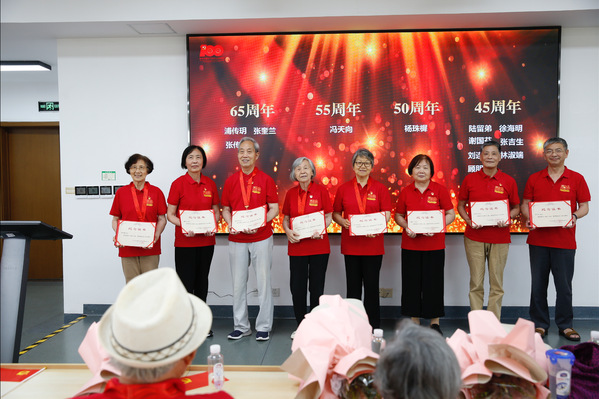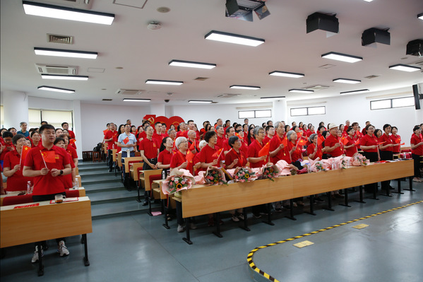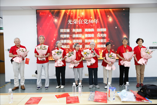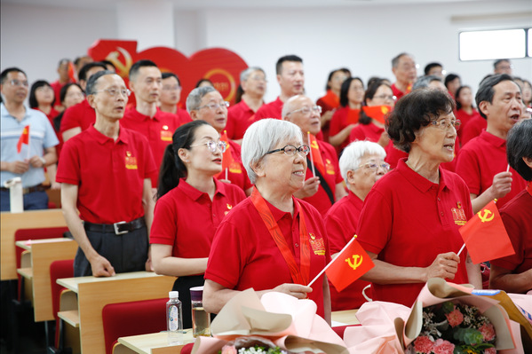 不忘初心、接续奋斗;牢记使命,砥砺前行,h动漫 党委继承学科发展历史文脉,传承前辈们的优良传统和伟大精神。今年,党中央决定首次颁发“光荣在党50年”纪念章,学院邀请党龄达到50周年的老同志来到会场,由学院党委委员侯敏跃老师为他们颁发纪念章,青年师生代表送上鲜花。台上老同志们分享感受体会,纷纷表示要永远跟党走,继续为党的伟大事业贡献力量。入党68周年的高维彝老师热情歌唱,唱出对党的无限热爱;曾参加过抗美援越、入党51周年的郑琼如老师用英语高唱《国际歌》,引发全场热烈的掌声。