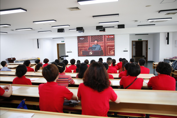 师生党员齐聚333会议室,通过视频直播认真学习习近平总书记讲话精神,以澎湃的心情共同迎接这一庄严而激动的时刻。