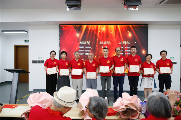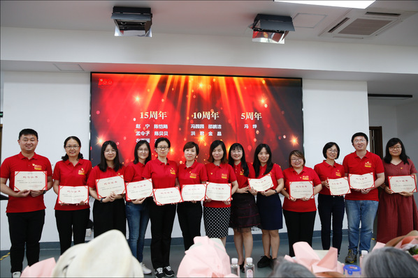 校优秀共产党员代表赵朝永发言,回顾了自己入党的心路历程,表示要继续不忘初心,砥砺前行,为中华民族的伟大复兴贡献自己的力量。大会还为入党逢五逢十的党员集体过政治生日并颁发纪念奖章。
