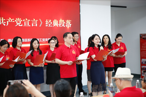 法语系、德语系、俄语系联合教工党支部党员重读《共产党宣言》经典段落,重温马克思主义经典著作,体会马克思主义的时代光辉。