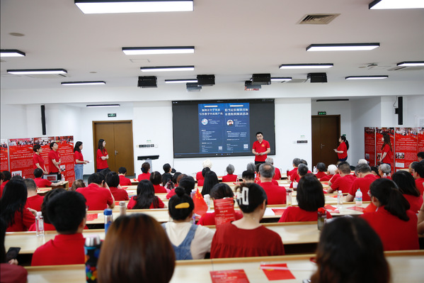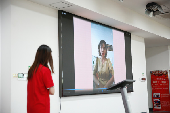 2020级学术型研究生党支部书记金晶、副书记李梦婕汇报展示“多语种讲四史”成果,2021年,该支部多名党员组成多语种党史宣讲团走进中小学讲述长征故事,深刻践行大中小思政课一体化的要求,获得了广泛关注和认可。