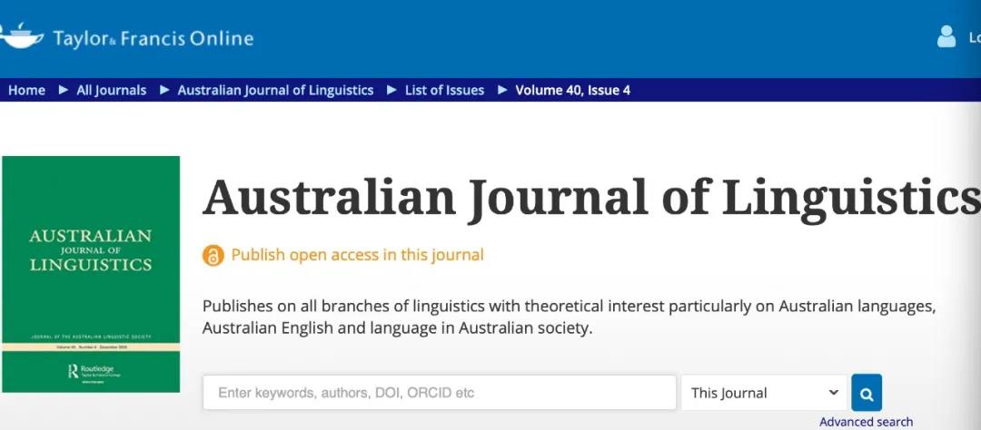 该论文已被国际应用语言学权威期刊Australian Journal of Linguistics (SSCI收录)录用,将于2021年第41期刊出。