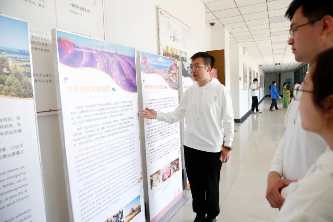 世界上许多国家都有植树的传统,图中法语专业同学正在介绍法国的植树文化