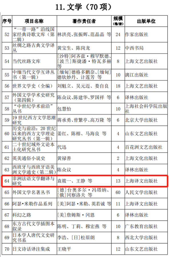 2021年12月30日,国家新闻出版署发布《出版业“十四五”时期发展规划》,h动漫 法语系袁筱一、王静等专家编著的《非洲法语文学翻译与研究》成功入选“十四五”时期国家重点图书出版专项规划。