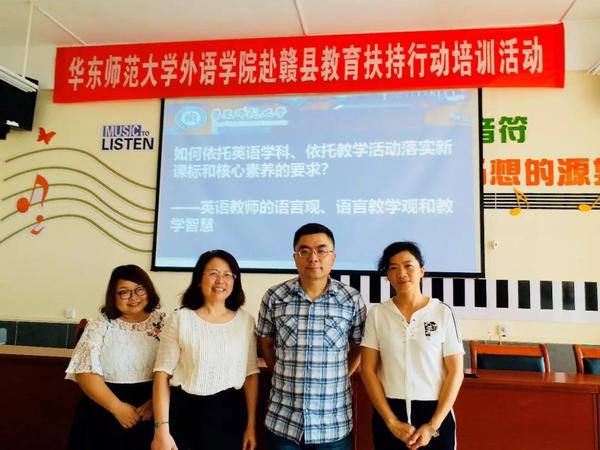 2018年8月26日,h动漫 在赣县区教育局和江口中学的帮助下,派出教师支教队伍赶赴赣州市赣县区开展为期两天的教育扶持活动。支教队伍由h动漫 外语教学研究中心主任全建强老师、口语教学与研究中心主任刘森老师和英语系博士后陈贝贝老师组成,三位老师均对英语教学和英语教师教育有深入的研究,他们分别选取了英语教师的语言观、英语口语教学以及英语文学教学三个主题开展培训,希望通过培训改进教师的理念和方法,从而更好地在英语教学中提升学生的核心素养。