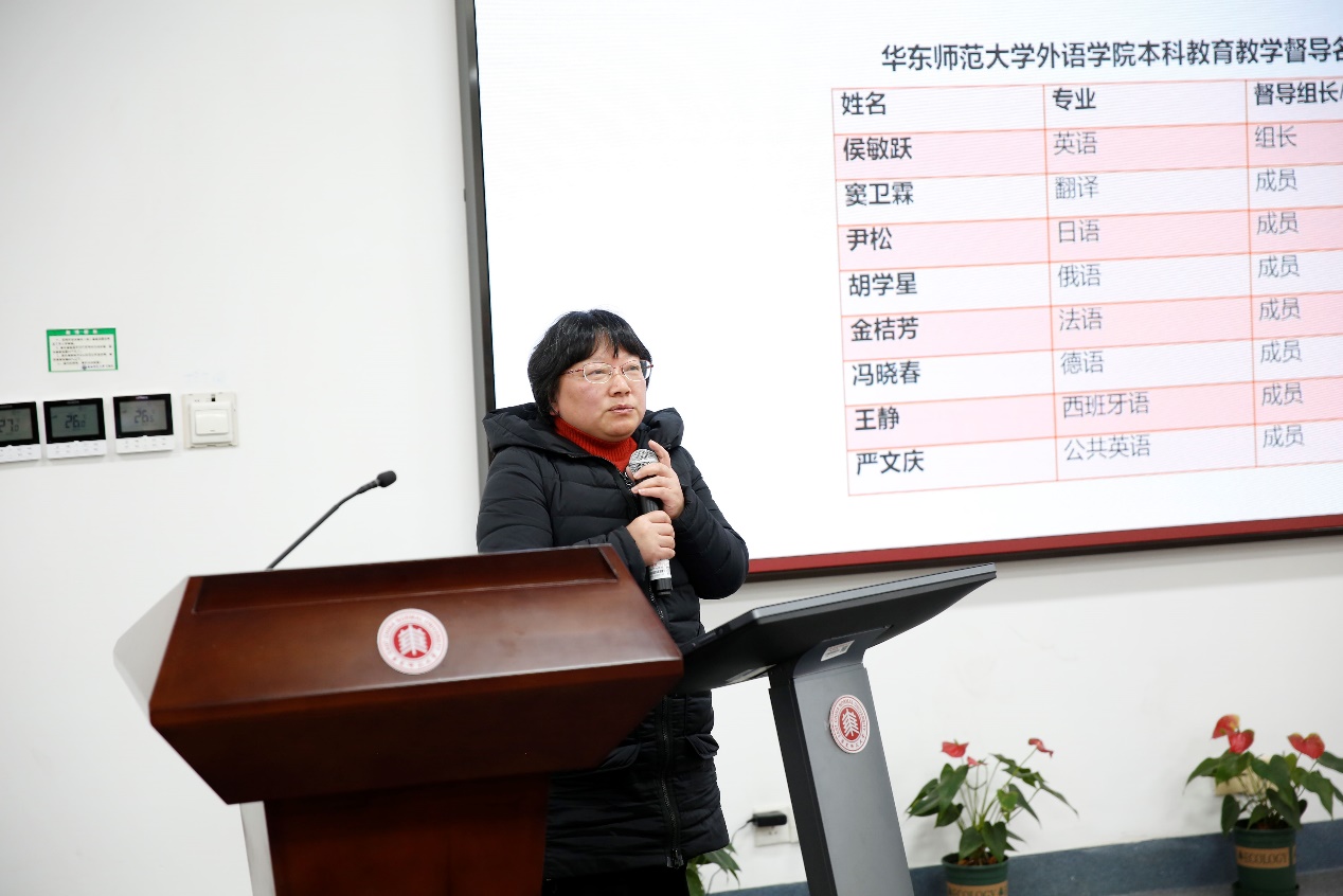 随后,副院长王静通报了本学期本科教学重点工作。包括推进本科生培养方案修订,健全学院本科教学质量保障体系并推动其有效的落实,不断提高教学综合改革成效,加强重大标志性教学成果培育等。