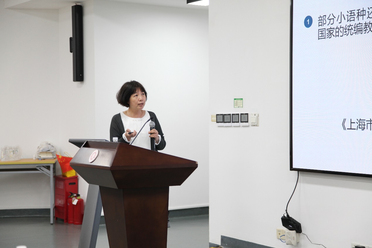 关键语种教育研究中心主任、华东师大日语系主任尹松以“中学日语教师教育的现状与课题”为题开展主旨报告。她从上海市中学多语种教学现状调查入手,指出了当前中学日语教师存在教学实践研究能力不足等挑战,提出大学教师可以在教学实践研修、基础数据收集、国际比较研究、教育教学衔接、教育理论构建等方面帮助中学日语教师提高教学水平,实现互帮互助,互利共赢,为适应时代变化,服务国家战略贡献己力。