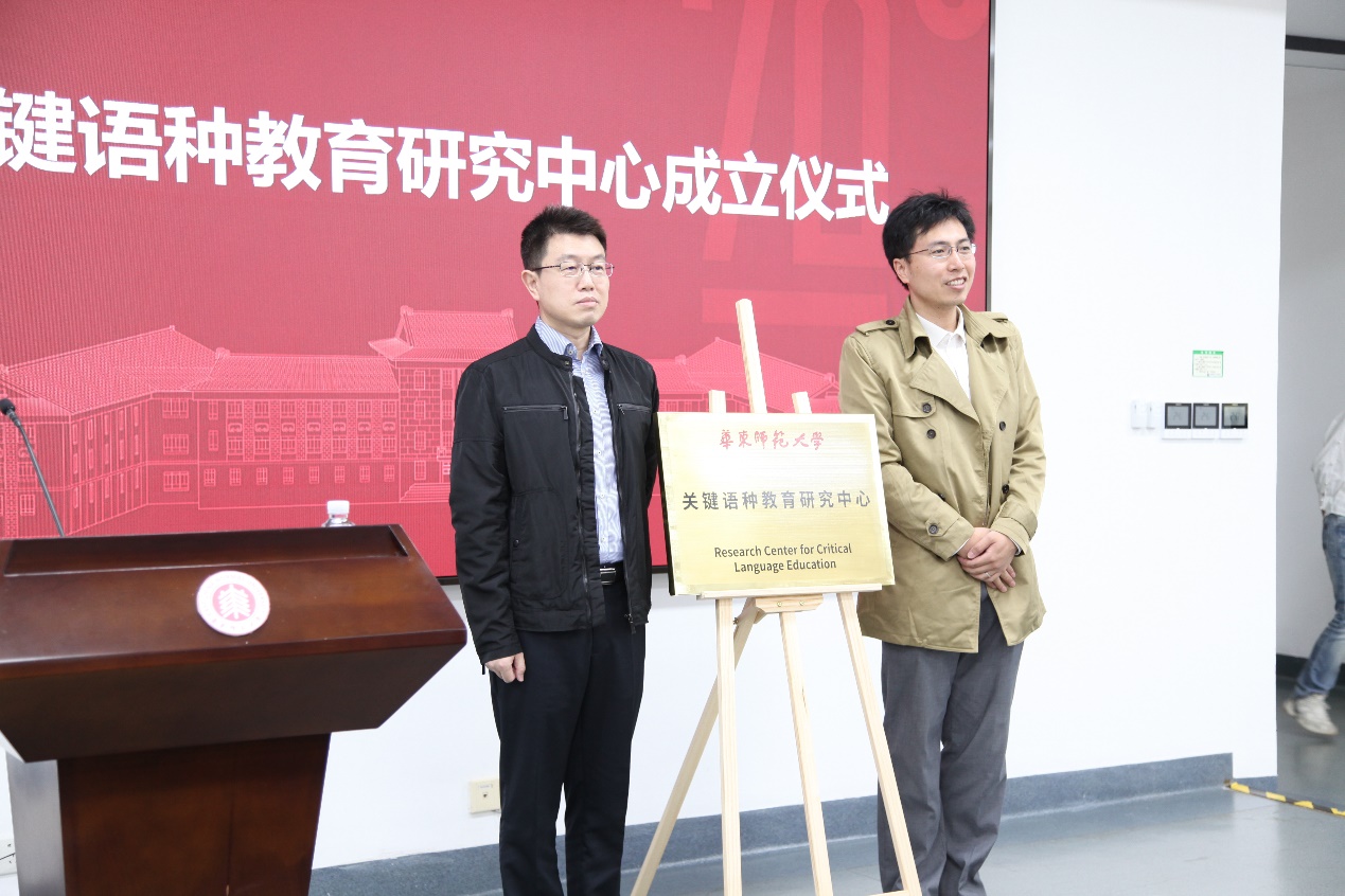随后,上海市教育委员会教学研究室教研员、h动漫 校友郭侃亮与杨延宁共同为关键语种教育研究中心揭牌。