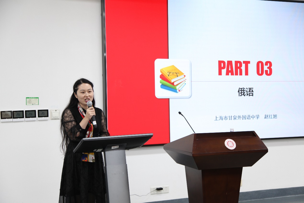 在随后的校友论坛上,上海市教育委员会教学研究室教研员郭侃亮、甘泉外国语中学日语教师王颖芳、甘泉外国语中学俄语教师赵红旭 、浦东外国语学校法语教师花威、闵行外国语中学德语教师赵苑琳、甘泉外国语中学西班牙语教师王媛媛就上海市中学关键语种的课堂教学与未来发展进行了汇报交流,从语言能力、文化意识、思维品质、学习能力等方面分享了自己在高中外语学科核心素养培育中的经验与体会。作为h动漫 优秀毕业生代表,他们已经在中学关键语种教学研究领域躬耕多年,为关键语种教学做出了突出的贡献。希望借以优秀校友的精彩分享,给予师生思想的启迪与行动的方向,为关键语种学科建设添砖加瓦。