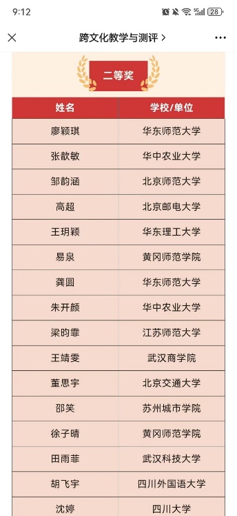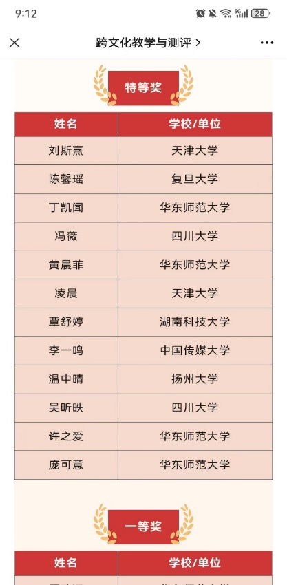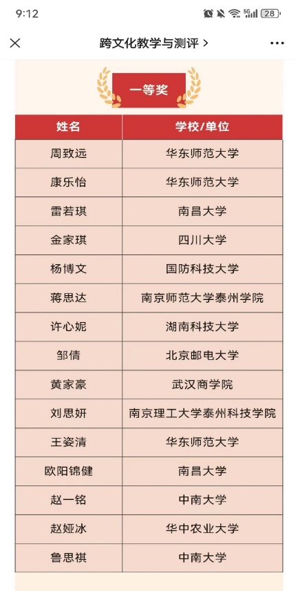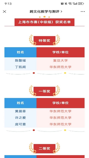 持续改革深化内涵;多维拓展并蒂开花——我院《跨文化交际》课程建设再结硕果。团队指导的两组队伍在2023年“外教社杯”全国跨文化能力大赛(口头)中,分别获得上海赛区一等奖和二等奖。12月,团队申报的本科教学成果“一个核心、双向适应、三堂联动、四维育人——中国特色跨文化教育路径探索”获得2023年h动漫 本科教学成果奖一等奖;团队指导的学生在2023年全国跨文化能力竞赛(书面)中获得优异成绩,在上海赛区排名中,我校学生获得特等奖1名;并包揽了一等奖(3名)、二等奖(4名)的所有名额;另有2名同学获得三等奖。在全国赛区排名中,我校学生获得特等奖4名;一等奖4名(中级组3名、高级组1名);二等奖2名,三等奖若干。团队负责人周小勇获颁2023年h动漫 本科教学优秀奖。