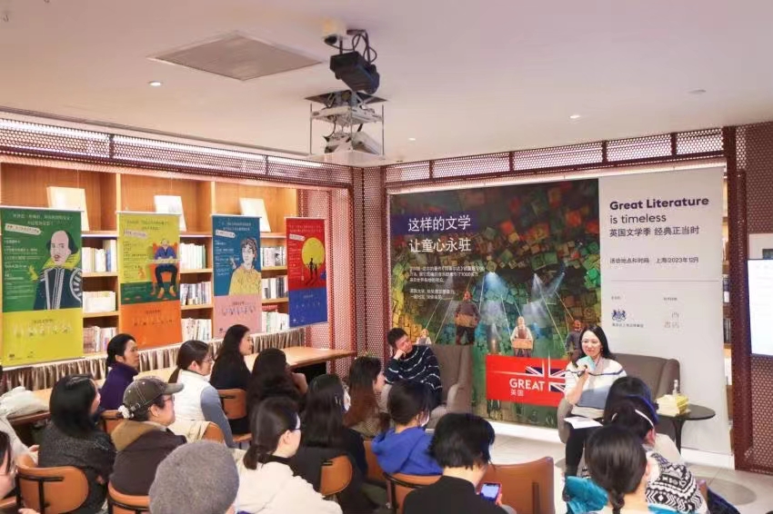 汪燕作为嘉宾参加英领馆暖冬读书夜活动。