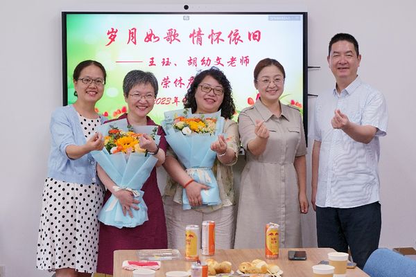 大学英语教学部举行王珏、胡幼文老师荣休座谈会。