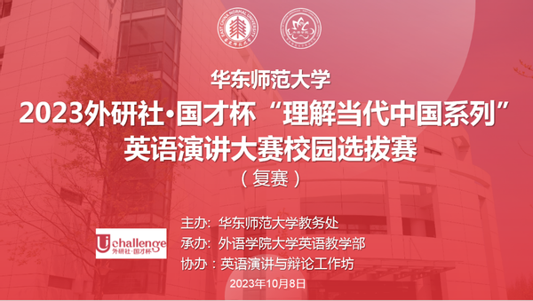 On Oct. 8, 2023, the rehearsal of the school audition of East China Normal University for the 2023 National English Speech Contest “ETIC Cup—Understanding Contemporary China” was held on the Minhang Campus. The competition, which ranks as a national class A contest, aims to guide college students to understand contemporary China, deeply comprehend the core meaning of Xi Jinping’s Thought on Socialism with Chinese Characteristics for a New Era, promote the cultivation of English-speaking skills and cross-cultural consciousness, and improve their ability to tell China’s story and spread China’s voice in English.