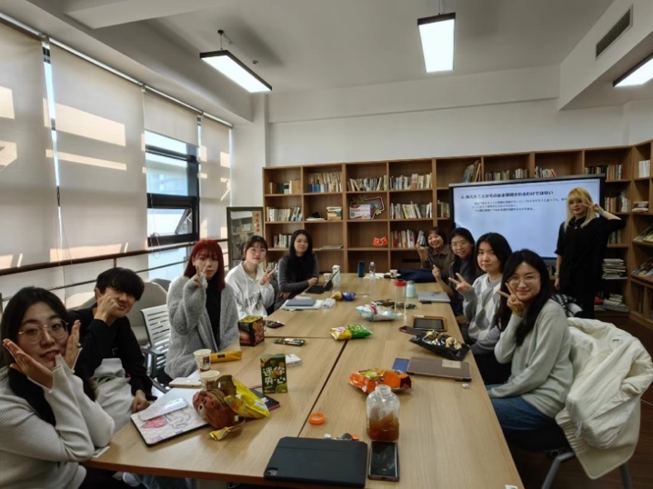 日语系学生与日本新潟国际信息大学语言交换生交流。