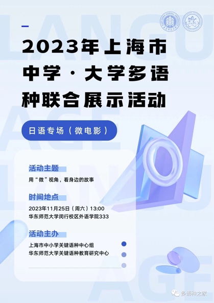 柳泽拓老师指导本科生2组共16名学生参加“2023年上海市中学·大学多语种联合展示活动”(日语微电影)获团体一等奖和二等奖。